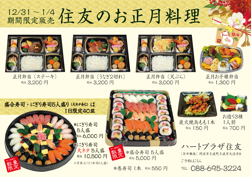 12/31~1/4¤Î´ü´Ö¤Ï¤ªÀµ·î¥á¥Ë¥å¡¼°Ê³°¤Î¤´Ãíʸ¤Ï¤ª¼õ¤±¤Ç¤¤Þ¤»¤ó